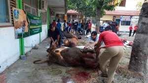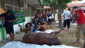 SMKN 1 Bojonegoro tahun ini menyembelih 3 ekor sapi dan alhamdulillah berasal dari Syirkah Bapak/Ibu Guru