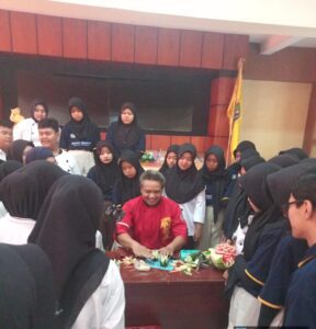 Melalui program ini instruktur memperkenalkan seni dan teknik Fruit Carving. Para guru dan siswa tampak antusias dalam kegiatan tersebut.